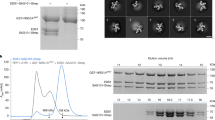 Nuclear extracts (600 μl) from the pEDS1:EDS1-YFP complementation line were processed as for IP input in the subsection “Immunoprecipitation (IP) of EDS1-YFP and TRB1-GFP from respective Arabidopsis complementation lines”. Obtained samples were fractionated on the column Superose 6 10/300 GL (50 kDa–5 MDa range, GE Healthcare Life Sciences, Ӓkta FPLC) at the rate 0.5 ml/min in 20 mM Tris–HCl pH 7.4 and 150 mM NaCl. The temperature was kept at 4 °C. In total, 28 0.5 ml fractions per sample were collected, concentrated with StrataClean resin (400714, Agilent) and analysed using Western blot method (α-GFP, 11814460001, MilliporeSigma) with the same total EDS1-YFP sample on each blot for the between-blot normalisation. A high-molecular weight marker was run prior to each experiment (28403842, GE Healthcare Life Sciences).