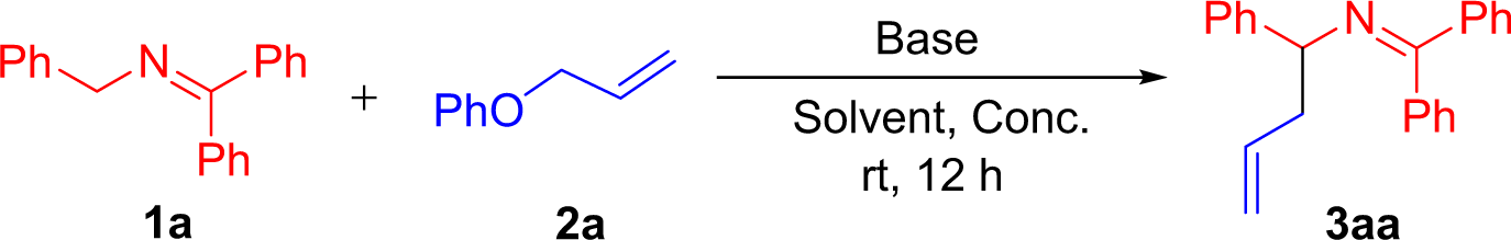 Table 1 Optimization of coupling of ketimine 1a and allyl phenyl ether 2aa,b.