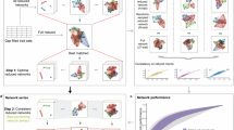 In our implementation of this approach we sample parameters θ from the distribution of Eq. (18) using the technique known as Hamiltonian Monte Carlo (HMC). In HMC one defines an inertial mechanics in a position space equivalent to the space of the parameters, with auxiliary momenta chosen so that the dynamics under the corresponding Hamilton’s equations samples from the desired distribution52. We implement the calculation in Stan, a probabilistic programming language that automatically performs HMC sampling for arbitrary target distributions53. In practice, the program operates on the log of the posterior probability, which for our distribution (18) has the form \({\mathrm{log}}\,P(\theta | {\boldsymbol{M}})=-C+{\sum }_{ij}({X}_{ij}+{Y}_{ij})\) where