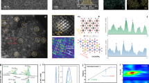 Figure 3d shows the Raman spectra of LSC/K-MoSe2 and K-MoSe2. Characteristic vibrational Raman modes of K-MoSe2 were detected at 106.2, 150.5, 221.6, 165.2, and 289.7 cm−1, corresponding to the J1, J2, J3, E1g, and E12g peaks of 1T-MoSe236. The characteristic Raman peak positions of LSC/K-MoSe2 were red shifted by 2 cm−1, indicating potential electronic interaction between the LSC and K-MoSe237. Ultraviolet photoelectron spectroscopy (UPS) analysis was performed to investigate the charge transfer effect between LSC and K-MoSe2. Work function values were derived from the secondary cutoff energies. Figure 3e shows that the work function of LSC/K-MoSe2 increased compared to LSC and K-MoSe2 alone (5.38 eV vs. 5.15 and 5.22 eV). This verifies that electronic structure modulation in LSC/K-MoSe2 occurs via charge transfer between LSC and K-MoSe2. Compared with LSC, LSC/K-MoSe2 with an increased work function has several merits for improving electrochemical performance. The increased work function enhances the rate constant and preexponential kinetic factor in the electrocatalytic reaction38,39. The high rate constant and kinetic factor reduce the bond strength between active sites and adsorbed intermediates of HER on the catalyst surface, increasing the exchange current density and enabling the Gibbs free energy of hydrogen adsorbed on the active site closer to the thermoneutral point (~0 eV). It also enables overpotential reduction for the Volmer reaction owing to the increase in proton concentration of the electronic double layer of the catalyst, thereby improving HER performance40. UV–Vis–NIR spectroscopy analysis in Fig. 3f reveals that the A and B excitonic peaks observed for semiconducting 2H-MoSe241 disappear in LSC/K-MoSe2 and K-MoSe2, illustrating the metal-like characteristics of the as-synthesized LSC/K-MoSe2 and K-MoSe242.