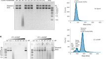 To assess ligand specificity of AsCap5 and LlCap5, we also carried out the same assays employing both 3′,3′-cGAMP and 2′,3′-cGAMP as potential activators (Fig. 2c−f). 3′,3′-cGAMP has been shown to be synthesized by bacterial enzymes8. On the other hand, 2′,3′-cGAMP is the product of cGAS1, and has not yet been observed in bacteria. Compared to 3′,2′-cGAMP, both 3′,3′-cGAMP, and 2′,3′-cGAMP are significantly less effective. For example, it requires 100 μM of 3′,3′-cGAMP and 2′,3′-cGAMP to achieve the same degree of DNA degradation accomplished by 10 nM of 3′,2′-cGAMP (Fig. 2c−f, lane 7). Therefore, the ligand specificity of AsCap5 and LlCap5 for 3′,2′-cGAMP over 3′,3′-cGAMP and 2′,3′-cGAMP is approximately 10,000-fold. We also tested the possible activation of AsCap5 and LlCap5 by 3′,3′-c-di-GMP and 3′,3′-c-di-AMP, and both are even less effective than 3′,3′-cGAMP (Supplementary Fig. 3). The high selectivity of Cap5 for 3′,2′-cGAMP, together with the fact that it is synthesized by its cognate CdnG, strongly indicates that 3′,2′-cGAMP is the biological signaling molecule that activates AsCap5 and LlCap5 for DNA degradation in vivo.