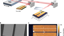 The broadband THz pulse produced by the transmitter antenna, with a spectrum spanning the 4–140 cm−1 range, is focused on the atomic force microscope (AFM) tip of the s-SNOM and the forward-scattered field is detected as a function of the time delay from the gate pulse by a second PC antenna, the receiver, working in reverse mode. This technique combines broadband spectral coverage with sub-diffractional spatial resolution of ~260 nm (see Supplementary Fig. 4) achieved by using an AFM tip with apex radius r = 40 nm, 80 μm cantilever length (Rocky Mountain Nanotechnology, 25PtIr300B) working in tapping mode, with an oscillation amplitude A ~200 nm and a tapping frequency Ω ~ 20 kHz.