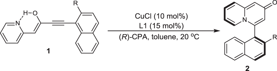 From: Brønsted acid-enhanced copper-catalyzed atroposelective cycloisomerization to axially chiral arylquinolizones via dearomatization of pyridine