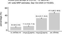 Bell, S., Clarke, R., Mounier-Jack, S., Walker, J. L. & Paterson, P. Parents’ and guardians’ views on the acceptability of a future COVID-19 vaccine: a multi-methods study in England. Vaccine 38, 7789–7798 (2020).