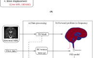 Previous animal studies55 have shown that when the CBF decreases below 20% of the normal level, the neurological damage to the brain becomes irreversible. In the current investigation, for the cases identified as ischemia, the values of CMCcort are <20% of the baseline level. These findings suggest that the significant reduction in \({{\rho }}{({{{{{\rm{CMC}}}}}}_{{{{{{\rm{cort}}}}}}})}^{2}/{{{{{\rm{PP}}}}}}\) when \({{{{{\rm{ICP}}}}}}/{{{{{\rm{MAP}}}}}}\ge 0.5\) involves irreversible brain damage. The validity of this postulate needs to be verified by independent cerebral damage assessments. For humans, the reported threshold for irreversible tissue damage is 16–18% of the normal level56. Occurrence of ischemia is also accompanied with a significant reduction in the cyclic variations of perfusion during the cardiac cycle. While both PP and MAP for the ischemic and non-ischemic cases are similar when \({{{{{\rm{ICP}}}}}}/{{{{{\rm{MAP}}}}}}\ge 0.5\), the reduced mean and cyclic variations in flux for ischemic cases suggest that the contraction of the micro-vessels has reached a level that it severely restricts the flow in them. The suppressed micro-perfusion also appears to accelerate the decrease in macro-perfusion. Since the intravascular pressure decreases with increasing branching hierarchy, “remote” vessels (1) are likely to have lower mean flow and flow oscillation magnitudes50,51, and (2) are more likely to be influenced by the external pressure. Accordingly, region 2, which appears to be located “closer” to major arteries, should have higher values of CMC and ΔCMC than regions 1, 3 and 4 at baseline level, in agreement with the present findings. Moreover, while the observed regional differences in flow pulsatility could be due to the aforementioned reasons, it may be dependent on other factors, including CSF dynamics and pulsatility, intrinsic regional differences in vascular morphology, compliance and regulation, and/or spatial heterogeneity in brain elasticity.