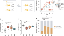 Colonization levels of MF and Firm5 bees were determined by colony-forming units from dissected guts, as described by Kwong et al.59. Colonization levels of CV bees were determined by quantitative PCR as previously described by Kešnerová et al.10. All qPCR reactions were carried out in a 96-well plate on the QuantStudio 1 Real-Time PCR system (Thermo Fisher Scientific, Waltham, MA, USA) with the thermal cycling conditions as follows: denaturation stage at 50 °C for 2 min followed by 95 °C for 2 min, 40 amplification cycles at 95 °C for 15 s, and 60 °C for 1 min. Melting curves were generated after each run (95 °C for 15 s, 60 °C for 20 s and increments of 0.3 °C until reaching 95 °C for 15 s) to compare dissociation characteristics of the PCR products obtained from gut samples and positive control. Universal bacteria primers (Forward: 5′-AGGATTAGATACCCTGGTAGTCC-3′, Reverse: 5′-YCGTACTCCCCAGGCGG-3′)10 and Apis mellifera actin (Forward: 5′-TGCCAACACTGTCCTTTCTG-3′, Reverse: 5′-AGAATTGACCCACCAATCCA-3′)60 were used here. Standards for target genes cloned into the pCE2 TA/Blunt-Zero Vector (Vazyme Biotech; Nanjing, China) were created by PCR amplification of the genomic DNA of Gilliamella apicola strain W8127. The copy number of plasmids was determined by performing standard curves on serial dilutions of plasmids containing the target sequence. The final concentrations of the plasmid in these template samples ranged from 101–107 copies per μl. Each reaction was performed in triplicates on the same plate in a total volume of 10 μl (0.2 μM of each forward and reverse primer; and ChamQ Universal SYBR qPCR Master Mix, Vazyme Biotech) with 1 μl of DNA. Each plate contained a positive control and a water control. The data was analyzed using the QuantStudio Design and Analysis Software (version 1.5.0; Thermo Fisher Scientific). After the calculation of the bacterial 16 S rRNA gene copies, normalization with the actin gene was carried out to reduce the effect of gut size variation and extraction efficiency. In brief, bacterial 16 S rRNA gene copies were normalized to the medium number of actin gene copies by dividing by the ‘raw’ copy number of actin for the given sample and multiplying by the median number of actin gene copies across all samples.