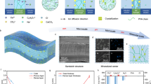 Alginate (Alg), a natural polysaccharide polymer, is one of the most widely used polymers for hydrogel fabrication because of good processability with ionic crosslinking, environmental sustainability, biocompatibility (low toxicity), and controllable biodegradability20,21. Despite these advantages, the inferior mechanical properties limit the utilization of Alg hydrogels. Several methods have been proposed for addressing this problem. The mechanical properties of Alg hydrogels are typically improved by increasing the Alg chain length or Alg concentration of a precursor solution22,23,24. These approaches generally need a highly viscous precursor Alg solution, which causes difficulties in handling and obtaining uniform hydrogels. An additional introduction of strong covalent crosslinking can substantially enhance the stiffness of the Alg hydrogel; however, the hydrogel generally becomes brittle and the strength declines25. Strong and stiff reinforcements such as particles and fibers are also often mixed with the Alg solution to obtain mechanically reinforced Alg hydrogels. Despite that, the mechanical performances of the existing composite hydrogels are not sufficient to afford strengths and elastic moduli of MPa-to-GPa magnitude26,27,28,29. Another method, a drawing method, which is a post-process to increase the Alg concentration and crosslinking density of preformed hydrogels, produces a significant mechanical performance enhancement with a form of fiber/thread-like hydrogels30,31,32. However, they are apparently not suitable for manufacturing large-sized hydrogels with a uniform shape and homogeneous mechanical properties because an additional step, such as weaving, should be included for fabricating large-sized hydrogels.