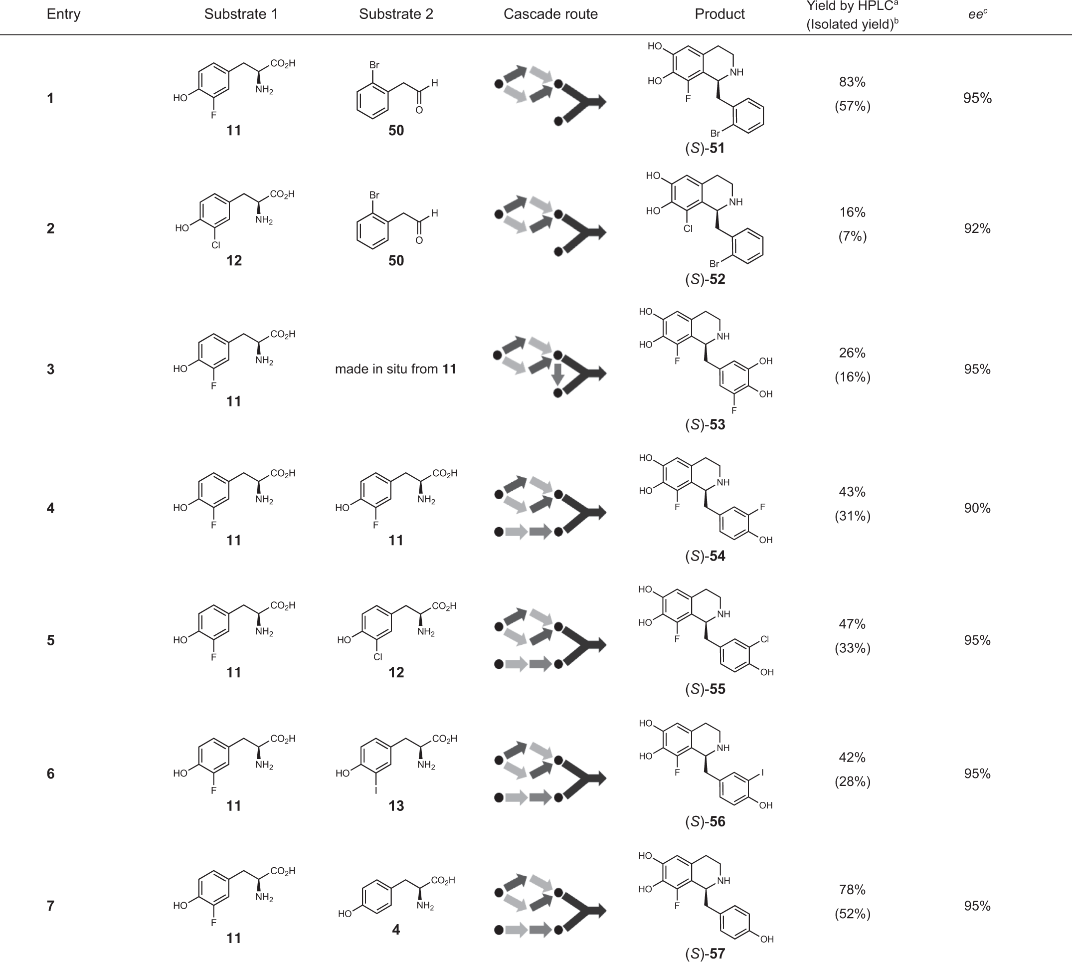 Table 4 Parallel cascades with CnTYR variants, EfTyrDC, CvTAm, and TfNCS-A79I to halogenated BIAs