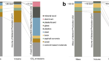 For different unit processes, emissions were based on country/region-specific inventory data (Section S2, Supplementary Information), collected from the ecoinvent database (version 3.6, cut-off system model)90 and literature22,24,30. A clinker-to-gypsum mass ratio of 95:5 was assumed for all cementitious binders modeled. We scaled our inventory analysis model to achieve the functional unit (i.e., 1.4 kg of cementitious binder) with varying proportions of clinker and secondary CMs, to identify potential (i.e., maximal) CO2-eq. emission savings associated with substituting clinker and cement using secondary CMs.