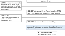 A test-negative case–control design was used to estimate vaccine effectiveness in those aged 18 years and over against hospitalisation following a PCR test for SARS-CoV-2, as described previously22,23,24,25. Cases were those testing positive and controls those testing negative by PCR. Effectiveness was assessed using a variety of hospitalisation endpoints designed to differentiate between hospitalisations likely to be because of COVID-19 and those that may be hospitalisation with COVID-19 but potentially due to another cause. Effectiveness against Omicron and Delta was assessed using periods in which these variants were circulating and using the information on sequencing, genotyping and PCR s-gene target.