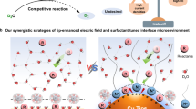 The α-Fe2O3/CP NRs were synthesized according to a reported method57. Typically, 0.17 g FeCl3·6H2O and 0.1 g Na2SO4 were mixed into 15 mL deionized (DI) water and stirred to obtain a homogenous solution. Then, the mixture was transferred to a Teflon-lined stainless autoclave. A piece of CP (2.0 × 3.0 cm2) was immersed into the solution, and the autoclave was maintained at 120 °C for 6 h in an oven. The obtained FeOOH/CP was washed with DI water several times and dried naturally. Subsequently, the sample was heated to 450 °C for 3 h in a temperature-controlled oven with a heating rate of 3 °C min−1 under an Ar atmosphere, and then naturally cooled to ambient temperature obtaining the α-Fe2O3/CP NRs.