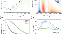 To better understand the carrier dynamics, the ∆A signals recorded at the two maxima of the bleach (i.e., 406 and 336 nm) and the photo-induced absorption at 414 nm are shown in Fig. 4b and fitted using following equation61,