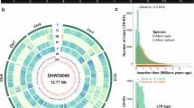 Complementary methods were employed to evaluate the quality of the genome assembly. First, genome completeness was assessed based on conserved plant genes in the BUSCO (v3.0.2) and CEGMA (v2.5) databases. Second, Illumina short-reads were mapped to the assembled genome using BWA (v0.7.8)44 to assess coverage rate and average depth. The LTR_retriever (v1.0.7)22 package was used to evaluate genome quality. Mequery (v1.3) was used to assess the consensus quality (QV) value and completeness of the genome assembly20. The markers of genetic map21 were mapped to our genome using Chromonomer (v1.07, https://github.com/jleluyer/chromonomer_workflow), and collinear relationships were displayed using Python scripts.