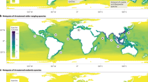 Species with larger maximum body sizes often have lower intrinsic rates of population growth, less capacity to withstand fishing mortality, and are typically the most commercially valuable38,39. However, the connections to extinction risk and attribution to overfishing are complicated because larger-bodied species also tend to have larger geographic ranges40. Yet, larger geographic ranges might not reduce extinction risk because mobile wide-ranging species transit through more jurisdictions and spend less time in protected areas, thus increasing their exposure to a wider range of fisheries and more fragmented management41. Threat level is determined by the interaction of intrinsic sensitivity, such as body size, with a threatening process, which we indexed with depth and geographic range as a measure of the accessibility of a species to fisheries and fragmented management29.