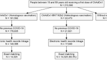 The UK COVID-19 vaccination programme has been in place since December 2020 with primary courses of two doses of either BNT162b2 (Pfizer-BioNTech, Comirnaty®), ChAdOx1-S or mRNA-1273 (Spikevax, Moderna). From May 2021, ChAdOx1-S primary immunisation was not recommended as first-line vaccination for individuals not in a clinical risk group aged under 40 years following reports of rare cases of concurrent thrombosis and thrombocytopenia after the first ChAdOx1-S dose18,19. Booster vaccination with either BNT162b2 or a half dose (50 µg) of mRNA-1273 was introduced in September 2021 to adults over 50 years old and those in risk groups, and in November 2021 expanded to all adults. A small number of individuals who had received at least one dose of ChAdOx1-S previously and for whom vaccination with both BNT162b2 and mRNA-1273 were clinically contraindicated, were recommended booster vaccination with the ChAdOx1-S vaccine20. Clinical contraindications included individuals with a prior allergic reaction to any component of the vaccine, e.g. polyethylene glycol, or individuals who had a previous systemic anaphylaxis reaction to a COVID-19 vaccine20. ChAdOx1-S was in some cases also offered for logistical reasons, for example, to housebound individuals.