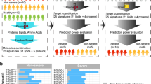 We next examined the supervised learning models to identify the most important biomarkers of severe/critical disease (Methods) (Fig. 6b, Supplementary Fig. 21b, Supplementary Data 1p-r). Although only a minority of the input features to the multi-omic model were proteins (34%; 6323/18,548), proteins made up the majority of the top 15 most important predictors (10/15 for lasso and 9/15 for random forests). This, and our finding that the plasma proteome was a superior classifier of severity than the PBMC transcriptome, highlights that plasma proteins provide a valuable read-out of the pathophysiological processes in severe COVID-19.