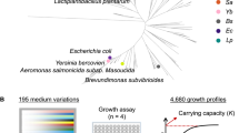 E. coli was cultured in LB medium or routine M9 minimal medium (cold spring harbor protocol, NH4Cl as sole nitrogen source). Nutrient and carbon sources include 0.2% glucose plus 0.2% casamino acids (cAA), 0.2% glucose, 0.2% glycerol, 0.2% lactose and 60 mM acetate. V. natriegens was cultured in either LB3 medium (LB nutrient broth with a final 3% w/v sodium chloride) or M9 minimal medium (NH4Cl as sole nitrogen source) supplemented with different nutrient or carbon sources including 0.4% glucose and 0.4% casamino acids (cAA), 0.4% glucose, 0.4% glycerol and 60 mM acetate, respectively. The M9 minimal medium for V. natriegens contained an additional 2% w/v NaCl, as the same described in Lee et al.34.