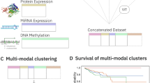 We employed the ResNet-50 network, a residual neural network with 50 layers56, to extract 2048 features from the image patches. To mitigate the impact of artifacts in the whole-slide images, we applied the k-means algorithm to cluster the extracted feature vectors into 10 clusters, because typical colorectal cancer pathology images contain 10 different types of regions with biological significance (lymphocyte, stroma, debris, mucus, muscle, tumor, adipose tissue, background, normal, and others), and we used vision transformers57 to derive the informative features for each cluster. The clusters whose weights were in the top three (strong positive association) or bottom three (strong negative association) would be used in the downstream analyses. After the vision transformer, the dimension of the feature vectors of each cluster was reduced to 512 to obtain efficient image representations for multiple-instance learning58,59,60. We used a trainable attention-based pooling operation to aggregate these feature vectors. Our transformer encoder layers contain 512 neurons in the hidden layer, 8 heads, and 2048 neurons in the multi-layer perceptron, with a dropout rate of 0.1.