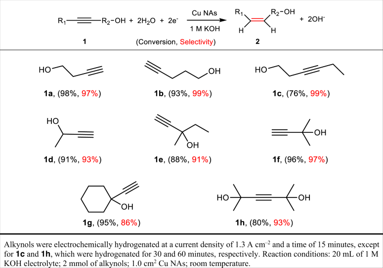 Table 1 Universality of the electrocatalytic semi-hydrogenation of alkynols on Cu NAs