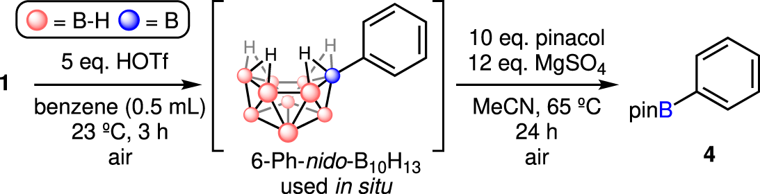 NMR spectroscopic yield of 4 (remaining 6-Ph-nido-B10H13)