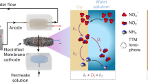where F is the Faraday constant (96,485 C mol−1), \({C_{{\rm NH}_3}}\) is the measured NH3 concentration, V is the volume of the cathodic electrolyte, I is the electrolysis current applied, t is the electrolysis duration, S is the effective surface area of electrodes and U is the corresponding applied voltage to the flow cell, which can be found in polarization curve.
