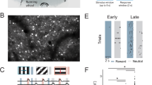 This task required the mouse to navigate through a virtual maze by using its movements to translocate in virtual space toward reward locations. The timing and progress of a trial were therefore controlled solely by the mouse, not the experimenter, as in real-world navigation. Previous work has shown that virtual mazes of this type trigger activity in navigation circuits, including place cells and grid cells, supporting the idea that this task involves spatial navigation56,57,58,59,60,61,62,63. To control the visual scene observed by the mouse, we fixed the heading angle and lateral position of the mouse in the virtual T-stem. Specifically, whereas the mouse could run in any direction on the spherical treadmill (Fig. 1c), our virtual reality software did not translate the mouse’s lateral running velocity on the treadmill into movement in the virtual maze throughout the T-stem of the maze, and only did so at the T-intersection and T-arms (Fig. 1d). Consequently, along the T-stem during trials with the same cues, the mouse observed the identical visual scene on every trial (Fig. 1d).