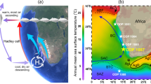 Eastern Boundary Upwelling Systems (EBUS) are among the most productive regions in the ocean and contribute 11% to global new production, which refers to biomass largely produced on the basis of nutrients introduced via upwelling and vertical mixing from the deep dark ocean into surface waters1,2,3. The associated assimilation of CO2 through the generation of biomass and its transfer to the deep sea is an integral part of the biological carbon pump4,5 which reduces atmospheric CO2 concentrations through the storage of CO2 as dissolved inorganic carbon (DIC) in the deep ocean. Even though it is widely assumed that the biological carbon pump responds to climate change, the magnitude and even the direction of change is still unknown6,7,8. However, the amount of DIC kept by the biological carbon pump is assumed to be linearly related to the inventory of regenerated nutrients, which are released during the remineralization of biomass in the deep ocean9. They stand in contrast to biologically unused so-called preformed nutrients, whose formation represents a leakage through which the biological carbon pump loses CO2 and makes e.g. the Southern Ocean south of 44°S a natural CO2 source to the atmosphere10,11. This leakage evolves when nutrients that upwell along with DIC are not fully utilized by biological production due to light and iron limitation12,13,14. Nowadays, rising CO2 concentrations in the atmosphere reverse the air-sea fluxes of CO2 and have converted the Southern Ocean into a key site for anthropogenic CO2 uptake with a current estimate of approximately 740 \(\pm\)290 Tg C year−1 15,16. Due to the counteracting effect of natural CO2 released from the biological carbon pump13 of about 400 \(\pm\)180 Tg C year−1 15,16, this results in a CO2 invasion of 340 \(\pm\)110 Tg C year−1 between 1990 and 200916,17,18. However, approximately 27.5% (~110 Tg C year−1) of the natural CO2 release from the biological carbon pump occurs within the Atlantic sector of the Southern Ocean between 44° and 58°S15,16, while the resulting preformed nutrients are transported northwards and subducted beneath warmer and lighter subtropical water masses19,20,21. Loaded with preformed nutrients, these mode waters support primary productivity in upwelling systems at lower latitudes and thus could potentially restore the CO2 uptake efficiency of the biological carbon pump. Although EBUS could therefore act as regional CO2 sinks through the utilization of preformed nutrients and low sea water temperatures which increase the solubility of CO222,23,24, global models suggest that upwelling systems (in particular ones at lower latitudes) act as net CO2 sources to the atmosphere25,26,27. This was also found to be the case in a modelling study of the Benguela Upwelling System (BUS), which is located in the southeast Atlantic Ocean (Fig. 1) and considered the most productive of all EBUS28. The study however suffered from a model that poorly represented the BUS, and an unclearly defined upwelling region27. Other studies within the BUS have not resolved these issues as indicated by estimated CO2 fluxes ranging from −5.1 to 1.54 Tg C year−1 25,26,29, with opposing air-sea fluxes30 noted between the northern (11.5 Tg C year−1)31 and southern (−1.4 to −2.8 Tg C year−1)31,32 upwelling area. It thus remains elusive whether the BUS is a net CO2 sink or CO2 source to the atmosphere. Similar to the Southern Ocean, the BUS also suffers from a sparsity of data, and model simulations and evaluations26,27 were constrained by pCO2 data (partial pressure of CO2) from the Surface Ocean CO2 Atlas (SOCAT)33. So far this data product misses coverage particularly over the northern BUS shelf region, thus curtailing estimates of air-sea gas exchange for the BUS (Fig. 1).