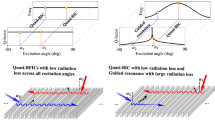 All simulations were performed using the commercial software COMSOL Multiphysics. The dielectric constant εr was set as 1 and 11.9 for air and Si, respectively. Periodic boundary conditions were applied to the sidewalls of the three-dimensional simulation model. Perfectly matched layers (PML) were added to the top and bottom of the air domain. To study the structure’s transmission property, the electromagnetic plane wave was incident from the top boundary. The eigenvalue solver was used to compute the eigenmodes’ Q factor and far-field radiation feature.