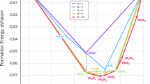Figure 1 depicts the formation of 3D A15 clusters in fcc metals from the elementary building blocks. Small A15 clusters (N ≤ 7) are formed via the accumulation of non-parallel (mutually-orthogonal) 〈100〉 dumbbells around the interstitial atom at the octahedral site. The dumbbells are located in the centres of the faces of fcc unit cell and form an icosahedron, whilst the interstitial atom at the octahedral site centre this icosahedron. Accumulation of seven interstitial atoms \({I}_{7}^{A15}\) (six dumbbells and one octahedral interstitial) yields a complete centred icosahedron. This configuration corresponds to the unit cell of β-W structure. Bigger A15 clusters (N > 7) can be formed by further agglomeration of interstitial atoms in fcc octahedral sites around the A15 icosahedron (e.g., \({I}_{13}^{A15}\) structure in Fig. 1), followed by subsequent accumulation of dumbbells that built icosahedral structures. Alternatively, some low energy A15 configurations with N > 7 (e.g., \({I}_{11}^{A15}\) cluster in Fig. 1) are formed by incomplete icosahedra sharing edges along 〈100〉 direction. Overall, the formation process of A15 clusters in fcc matrix occurs through the progressive accumulation of interstitial atoms at fcc octahedral sites and 6c Wyckoff positions of β-W structure with an energetic preference for most compact cluster configurations.