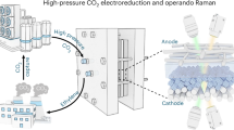 In prior studies that sought to lever pressure in aqueous-based CO2R20,21, PCO2 was reduced to CO or formate22. These include examinations of altered CO2R product selectivity on various metal catalysts under high pressure23,24,25,26. A Ni wire electrode that had no CO2R activity under ambient pressure showed 23% formic acid selectivity under 60 bar25. Enhanced formate selectivity was seen on Sn using PCO227,28. Theoretical modeling and control experiments were also conducted to understand CO2R under high pressure29,30,31,32,33. More recently, PCO2 has been found to transform Cu-based catalysts to become formate-selective34.