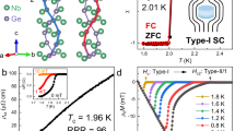 where b = ϕ/ϕ0 − [ϕ/ϕ0] ([x] denotes the integer closest to x). From Eq. (8) it becomes clear that either \({m}_{xy}^{-1}\) or κ1 must be nonzero to achieve the SDE. The requirement, combined with Eqs. (13) and (15), becomes \({m}_{1}^{-1}\ne 0\) and \(\sin 2\theta \ne 0\), which is just equal to requiring the nanotube to have a chiral structure. When the magnetic filed Hx is small, η is linear in Hx (note that ϕ = πR2Hx). As the magnetic flux increases, the expression under the square root becomes negative for small ∣α∣ since \((\frac{{m}_{x}}{{m}_{y}}-\frac{{m}_{x}^{2}}{{m}_{xy}^{2}})\) is positive definite. This results in a decrease of the transition temperature to \({T}_{c}^{{\prime} }\) with \(\delta {T}_{c}={T}_{c}-{T}_{c}^{{\prime} } \sim {b}^{2}(\frac{{m}_{x}}{{m}_{y}}-\frac{{m}_{x}^{2}}{{m}_{xy}^{2}})\frac{{m}_{0}}{{m}_{x}}\). And the temperature dependence of Eq. (8) may be written as \(\eta \sim \sqrt{{T}_{c}^{{\prime} }-T}\). A substitution of Eqs. (12–16) leads to the dashed curves in Fig. 2 (a) and (c), which show great agreement with previous numerical results except two situations, (i) r ≫ 1 and ϕ/ϕ0 is close to a half integer and (ii) The temperature is far below Tc. In both situations, the assumption that Jc± can be obtained with the same index n in Eq. (7) no longer holds.