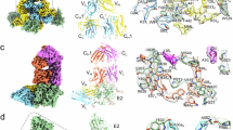An alternate strategy was also undertaken in order to obtain more extensive IGH520 and E1 density (Supplementary Fig. 3). In this approach, 2D and 3D classes containing visible IGH520 signals were selected (Supplementary Fig. 3a–c). After multiple rounds of heterogeneous refinement, particles within this stack underwent particle subtraction in which the Fc regions of the HEPC74 and AR4A Fabs were removed. This was then followed by local refinement using a mask encompassing the remainder of the complex (Supplementary Fig. 3h–k). Merging of the results of the primary map and the local refinement map yielded more extensive maps of IGH520 and E1, although at lower resolution (Supplementary Fig. 4).