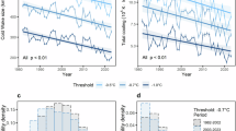 To examine the robustness of the observed landward variation or notable increase in RI events landward, we investigated the data from the pre-satellite period (1951–1979). Although fewer RI events (85.9/year) occurred during this period than during the satellite period (139.6/year), the same landward variation was apparent, with magnitudes of 0.26 to 1.31/decade/1,000 km, depending on the selection of RI threshold (Supplementary Fig. 6).