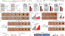 Approval for animal experiments was obtained from the Animal Care and Use Committee of Tongji University under protocol number TJBB05122101. Tumor size did not exceed 20 mm in any direction and tumor volume did not exceed 2000 mm3. Mice were maintained in a temperature-controlled and light-controlled environment with ad libitum access to water. The mice were randomly put into separate groups/cages for experiments and received a standard chow diet (laboratory diet 5L0D; 58% of calories from carbohydrate, 13.5% of calories from fat, and 28.5% of calories from proteins). Five-week-old male nu/nu mice (seven per group) were subcutaneously injected with 3 × 106 gene-modified HCT116 or 5 × 106 gene-modified SW620 cells in 200 μl of PBS. Tumor volume was measured by using length (a) and width (b) with Vernier calipers and calculated using the equation: V = ab2/2.