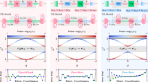 In Fig. 3a, we show a mechanical structure whose dynamics are governed by two in-plane DOFs at each site (transverse displacement u and rotation Φ). Each site is connected with the next via two bonds corresponding to bending and shear stiffness (KB and KS, respectively). We set P = md2/I, the ratio of the generalized masses (particle mass m, lattice constant d, and particle mass moment of inertia I) and \(\eta=\frac{{K}_{B}}{{K}_{S}}\), the ratio of generalized stiffnesses (with KB and KS the bending and shear stiffnesses, respectively).