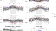 where \({T}_{s}\) is the land surface temperature (\(K\)), and \(\alpha\) is the broad-band surface albedo. \({T}_{s}\) was obtained from the MODIS Land Surface Temperature and Emissivity dataset (MOD11).