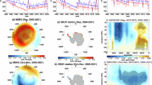 We use Microwave Limb Sounder (MLS, on-board the Aura satellite) Level 2 Ozone Mixing Ratio Version 5 data for 2004–2022 and for the months of September-November. MLS/Aura ozone data is known to have minimal drift over time when compared to ground-based detectors, so it is a reliable instrument to use when comparing ozone measurements over the 21st century51. The MLS ozone volume mixing ratio (VMR) data is limited to the recommended vertical range: 261 to 0.0215 hPa52. The data is interpolated to 1° × 1° latitude-longitude coverage. Outlier days excluded due to anomalous data are (reported as day of year) 2004: days 252 and 253; 2005: day 293; 2006: day 307; 2007: day 310; 2009: day 300; 2012: day 328; 2016: day 292; 2018: day 298; 2022: day 277.