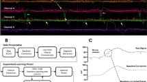A subpopulation of 31 patients from the DISCHARGE-1 study20 was included in the analysis. This is a randomly selected third of the Berlin cohort in DISCHARGE-1 who had direct current (DC)/ alternating current (AC)-electrocorticogram (ECoG) (0–45 Hz) recordings and at least one SD12. Briefly, DISCHARGE-1 is a prospective, observational, multicenter, cohort, diagnostic phase III trial in which 180 patients suffering aneurysmal subarachnoid hemorrhage (SAH) were continuously monitored in the neurointensive care unit from the day of intervention up to 14 days post-hemorrhage in order to study the early and delayed development of cerebral ischemia. The main part of the monitoring consisted of continuous ECoG recording using a subdural strip of platinum/iridium electrodes (Wyler, 10 mm spacing, 5 mm diameter, Ad-Tech Medical, Racine, Wisconsin, USA) neurosurgically placed on viable cortical tissue through a craniotomy or a burr hole. A subdermal platinum/iridium needle electrode was used as a reference for monopolar recordings with a DC-coupled amplifier (BrainAmp MR plus, Brain Products, Munich, Germany) and BrainVision Recorder software (Brain Products). From this dataset of 31 aSAH patients (21 females, 10 males, mean age: 57 ± 11 years), all non-isoelectric SDs with good recording quality were selected in 26 patients. Around each SD, a total of 1360 fragments of 9 minutes in length were collected. The patients’ ECoG were originally recorded and SDs manually detected with a Powerlab 16/SP and LabChart-8 software (ADInstruments, New South Wales, Australia) with a sampling frequency of 200 Hz. The selections of SDs from the LabChart files were exported in.txt files to later be analyzed with Python and Matlab.