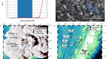 Seafloor sediment samples were collected with the Ocean Instruments MC-800 multicorer system. The cores described here were then subsampled from the multicore tubes with push core tubes. These were 80 cm long polycarbonate core liners which were inserted down the core barrel, then sealed with absorbent foam, capped and taped at either end, and stored upright in a 4 °C refrigerator on board and onshore until analyses. Sediment core liners were then cut longitudinally, and the sediment parted using cheese wire to create a flat surface on the split core halves. Once split, cores were immediately photographed and subject to sedimentological core logging that comprised visual identification of sedimentary structures, grain size and texture. Grain size was visually characterised through use of a grain size comparator, which has been shown by prior studies to relate to the coarsest 5% of the grain size distribution57. Core sample observations were synthesised in a visual sedimentological log (Figs. 3, S1, S2). Deposits were visually differentiated on the basis of their composition, colour, sedimentary textures and grain size, which included the identification of two main facies that are linked to the Hunga volcano eruption. These are (i) Volcaniclastic density current deposits, which comprise dominantly sand to granule-sized volcanic material that generally fines upwards and a very sharp basal contact (where it was sampled); and (ii) A thin veneer of orange-brown oxidised ash-rich deposits that has no obvious internal structure and that was sampled at seafloor, consistently overlying the density current deposits. As continued suspension and settling of ash was observed by video and sampling of the water column 3 months after the eruption (Figs. S13–S15), we consider these surficial seafloor deposits to be most likely related to ash fall out; however, it is possible that this facies may relate to the fall out of ash-sized material that was suspended by the volcaniclastic density current as a dilute cloud and subsequently settled out after the deposition of the coarsest load of the current, or that this relates to settling from a surface plume. Regardless, this does not affect the key conclusions of this present study.
