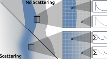 Figure 2a shows an example of a normalised FL-HOM trace for a sample consisting of 4-DASPI dye33. To ensure a high level of indistinguishability between the two interferometer arms, a narrowband 0.6 nm FWHM spectral filter (Alluxa 660-0.5-OD6) was used in each arm. This has the overall effect of increasing the interference visibility at the expense of reducing the achievable temporal resolution. Indeed, a wider bandwidth filter of 10 nm showed, under the same conditions, a maximum visibility on the order of ten times smaller dependent on the lifetime (see below). Typical photon count rates were of the order 106 photons/s with a photon coincidence count rate of ~14 × 103 photons/s outside of the HOM dip. The data shown in Fig. 2a was obtained with a long acquisition time of 2 s per delay point, for a total measurement time of approximately 40 minutes, and the number of coincident events was normalised by the total number of photon counts to account for fluctuations in laser power and fibre coupling. The step size of the translation stage equates to an optical delay of 16.7 fs. Figure 2a also shows a fit to our model without any approximations about the length of the reference pulse (i.e. before Eq. (3)) and the measured IRF, from which we recover a lifetime of 7.22 ± 0.04 ps. Previous work in ref. 33 measured a lifetime of 11 ps for 4-DASPI in water. While this is relatively close to our measurement, we attribute our shorter lifetime to potential differences in the temperature, pH, and emission wavelength chosen, all of which can affect the lifetime. To help validate our approach, we also conducted a measurement of 4-DASPI in ethanol which is known to produce a longer lifetime. From this, we observed a lifetime of 65 ± 1.2 ps which is in close agreement with previous measurements of 62 ps34 (see Supplementary Material). In order to investigate and ensure the capability of our approach, we significantly over-sampled the data and purposely measured for long times, thus resulting in a much lower noise level than a typical time domain FLIM measurement. As a means of comparison, Fig. 2b shows a similar measurement, but using a total acquisition time of only 3.5 s. By using a Markov Chain Monte Carlo approach for the lifetime retrieval, our model still returns a reliable lifetime of 6.8 ps. A full distribution of lifetimes derived under these conditions (i.e., 3.5 s total acquisition time, 260 individual measurements) is shown in Fig. 2c, which has a standard deviation of σμ = 0.7 ps. In Fig. 2d we report σμ versus total measurement time. This data were obtained by taking multiple short exposures of 50 ms for each optical delay point and summing them to obtain longer acquisition times. This was then repeated over multiple iterations to statistically evaluate the uncertainty of the measured lifetime (typical measurements and fits for each acquisition time can be found in the SI). In Fig. 2d the red line indicates a gradient of −0.5 i.e. a line proportional to the square root of the total measurement time which we expect to observe given that we have a set of independent and statistically equivalent measurements. It is also useful to determine how the number of coincident events themselves scale as a function of the measurement time. We evaluate this (see SM) finding that the signal-to-noise ratio improves proportionally to \(N/\sqrt{1+2N}\). For N > > 1 the \({{{{{{{\rm{SNR}}}}}}}} \sim \sqrt{N}/\sqrt{2}\), indicating that coincidence counting brings a penalty of \(\sqrt{2}\) in the SNR compared to direct intensity measurements.