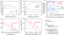 The dog-bone-shaped standard room temperature tensile specimens (Supplementary Fig. 17) were prepared by wire cut electrical discharge machining and grinding. The quasi-static uniaxial tensile test was carried out at room temperature with a tensile strain rate of 3 × 10−2 s−1 by using WDW3100 microcomputer-controlled electronic universal testing machine. The quasi-static uniaxial tensile test was carried out at a tensile strain rate of 3 × 10−4 s−1 by using YYF-50 slow strain rate stress corrosion testing machine. The original gauge length of the specimens was 25 mm. The tensile strength (Rm, MPa), proof strength at plastic extension 0.2% (yield strength, Rp0.2, MPa), percentage elongation after fracture (A, %) and percentage reduction of area (Z, %) were measured. At least two parallel tensile samples were tested under all experimental conditions to confirm that the data were statistically valid. During tensile testing at room temperature, a high-resolution strain extensometer was installed over the gauge length to ensure accurate measurement of yield behavior and tensile ductility.