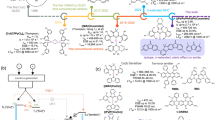 Cyclic voltammetry (CV) measurements were carried out for BNCZ and h-BNCO-1 (Supplementary Fig. 23). Based on the onsets of the oxidation and reduction curves, the HOMO energy levels are estimated to be −5.61 and −5.83 eV, and the LUMO energy levels are estimated to be −2.94 and −3.29 eV for BNCZ and h-BNCO-1, respectively. With carbonyl incorporation in the polycyclic aromatics, LUMO energy levels are more substantially deepened than HOMOs. The energy gaps (Eg) of h-BNCO-1 (2.54 eV) are slightly narrower than that of BNCZ (2.67 eV), which would lead to a redshift emission.