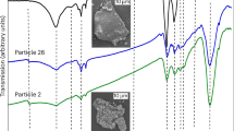 Scanning transmission X-ray microscopy (STXM) and X-ray absorption near-edge structure (XANES) measurements were performed at the I08 beamline of Diamond Light Source (DLS), UK. Spatially correlated energy dependent image stacks (~5 × 3 µm, 100 × 60 pixels) were acquired at the carbon (278–310 eV) and nitrogen (390–420 eV) K-edges with a nominal beam size of ~40 nm and a dwell time per pixel of 10 ms. For both the carbon and nitrogen measurements, the step size was 0.1 eV over the main edge and where important diagnostic features occur, and between 0.2 and 0.5 eV across the rest of the scan. The MANTiS program66 was used to align the image stacks, normalize to the background X-ray intensity (I0), and finally extract XANES spectra from every pixel in the full FIB lamella and specific regions of interest (ROIs). Spectral fitting was performed using the Athena software package67 utilizing the methodologies of Le Guillou et al. (2014)17 and Vinogradoff et al. (2017)13.