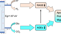 The therapeutic approach is depicted in Fig. 7a. Benefiting from the photothermal conversion effect of HEA@Gel under 658 nm laser irradiation at an intensity of 0.5 W/cm−2 and the nonsymbiosis effect between HEA and S. aureus, the infected diabetic wound was sterilized first. After bactericidal treatment, every subsequent day, a 658 nm laser was used to illuminate the wound at a light intensity of 0.1 W/cm−2 for 30 min in the following 10 days. Low-intensity laser irradiation has two effects. First, GHEA activates photosynthesis to produce O2 to improve the hypoxic wound microenvironment and accelerate vascular regeneration and wound healing. The second is to promote the release of AST from RHEA to reduce the levels of overexpressed ROS and inflammatory factors and regulate macrophage M2 polarization in wounds. Hence, HEA@Gel likely promoted fibroblast proliferation, keratinocyte migration, endothelial cell differentiation, and the progressive acceleration of infected wound healing in diabetic patients.