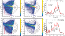 The ion-molecule crossed-beam setup used in this study with three-dimensional VMI and a photoionization-based quantum state selected pulsed ion beam source was described in detail previously25,26,27. The spin-orbit excited Ar+(2P1/2) ion was produced by photoionizing a pulsed pure Ar beam at the UV wavelength of 372.765 nm, which photoionized Ar atoms through a (4 + 1) REMPI process and prepared Ar+ ions in the spin-orbit excited 2P1/2 state with a purity of ~95%29. The UV laser was generated by doubling the fundamental output of a dye laser (LiopTec, LIOPSTAR-E) pumped by a 10 Hz Nd:YAG laser (Beamtech, Nimma-900). The UV laser was focused into the photoionization region by a plano-convex lens with a focal length of 15 cm. The pulse energy of the UV laser was controlled to be ~7.5 mJ, so only about 200 Ar+ ions were produced for each pulse, which could mitigate the space charge effect as much as possible, and at the same time maintain enough signal level for detection. The produced Ar+ ions were then accelerated to ~120 eV and reached the crossing region within ~23 microseconds. Before arriving at the reaction center, the Ar+ ions were focused and decelerated to the target kinetic energy (several eV) used for the collision experiment. A well-focused ion beam in the reaction center is pivotal for achieving scattering imaging with high energy resolution. We designed a tandem double Einzel lens system, which was more robust and could focus the ion beam better than the single Einzel lens setup26,27. The Ar+ ion beam crossed at 90° in the reaction center of the VMI stack with the neutral pulsed supersonic N2 beam (~40 K), which was produced by a general valve (Parker, Series 9). The exact velocities of the Ar+ ion and N2 beams were measured by the VMI setup. After crossing, high voltage pulses were switched on and the three components of the N2+ product velocity were measured by the three-dimensional VMI setup25. For each scattering image, ~100,000 product ions were collected to have enough statistics. According to the previous study, the COM collision energy spread in the forward direction is ~65 meV at Ec = 1.58 eV, and the intrinsic energy resolution of the VMI detection system should be better than 65 meV in the forward direction27.