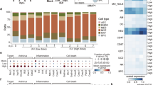 NLRP3 inflammasome activation and cell death can also be induced by the innate immune sensor ZBP121,22. In addition, it was previously suggested that ZBP1 can drive cell death in response to HS16. However, we observed similar dynamics of cell death in wild type (WT), Zbp1−/−, and Zbp1ΔZα2 BMDMs, as well as in control siRNA-treated and Zbp1 siRNA-treated BMDMs, in response to HS in the presence or absence of LPS (Fig. 1J–L and Supplementary Fig. 4A). To further confirm our findings, we used CRISPR to generate a new Zbp1−/− mouse line (referred to here as Zbp1TDK) (Supplementary Fig. 4B, C). Zbp1TDK BMDMs showed a similar rate of cell death with respect to WT BMDMs treated with HS in the presence or absence of LPS (Supplementary Fig. 4D–G). ZBP1 has also been reported to co-operate with Pyrin (Mefv) to mediate inflammatory cell death during Francisella and HSV1 infections23. However, we observed a similar extent of cell death in Zbp1−/− and Zbp1−/−Mefv−/− BMDMs treated with or without the NLRP3 inhibitor MCC950 with respect to WT BMDMs (Supplementary Fig. 4H), suggesting that ZBP1 did not co-operate with Pyrin or NLRP3 to drive the cell death. Altogether, our findings suggest that HS induces NLRP3 inflammasome activation during infection, but that NLRP3, ZBP1, and the other innate immune sensors tested are not required to induce the inflammatory cell death caused by HS and infection.
