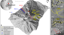 The dynamics of flank instability of volcanic islands are still poorly documented resulting in a great uncertainty on related tsunami generation. As many volcanic islands, Stromboli (southern Tyrrhenian sea, Italy) has in the north-western side a weak flank named Sciara del Fuoco (Fig. 1) which is the most impressive morphological feature of the volcano edifice with a mean slope, θ, of \(\sim 35 \! {\deg} \) extending also below the sea level for a total length of almost 3000 m. The Sciara del Fuoco represents the subaerial part of a partially filled sector-collapse scar (Fig. 1). In the last 13 ka it has been the source of potentially tsunamigenic large-scale (in the order of 109 m3) flank failures23,24 generating tsunamis probably with run-up of ~50 m18. Recent work on paleo-events16 has identified three well-preserved medieval (1300–1400 AD) tsunami deposits linked to the collapse of ~180 × 106 m3 of the Sciara del Fuoco, comparable to the 2018 Anak Krakatau flank collapse, and making victims in the Neapolitan Gulf16.