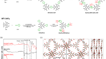 We synthesized the base PY-BPY-COF by reacting 4,4’,4”,4”‘-(pyrene-1,3,6,8-tetrayl)-tetraaniline (PY) with [2,2’-bipyridine] -5,5’-dicarbaldehyde (BPY) in a mixture of n-butanol/1,2-dichlorobenzene (0.5 mL/0.5 mL) containing HOAc (6 M, 0.1 mL). The reaction was conducted at 120 °C for 72 h via a solvothermal method, resulting in a yield of 86% (Supplementary Fig. 1a). Subsequently, the COF was reacted with bromoethane in a postsynthetic strategy to obtain ion-PY-BPY-COF (Supplementary Fig. 1b)58,59,60,61,62,63. Furthermore, we synthesized a new COF (im-PY-BPY-COF) via a cycloaddition reaction between PY-BPY-COF and paraformaldehyde (Fig. 1a & 1b and Supplementary Fig. 1c).