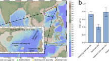 To further explore whether the geographical features of seamounts contribute to the high divergence of seamount viruses, the connectivity of viral populations between neighboring seamount sampling sites was calculated. As shown in Fig. 7c, neighboring sites not separated by seamounts generally showed strong connectivity among viral populations, whereas neighboring sites across the same seamount (i.e., with the summit in the middle) showed decreased connectivity. For example, NLG_S03 and NLG_S05 sites, which are located on two different seamounts but have no large geographic barrier between them, showed high correlation in their viral communities. However, the MP4_S01 site showed considerably weaker connection with the MP4_S05 site, even though both are located on the same seamount but on opposite slopes. Moreover, regardless of the substantial difference in the depth between MP4_S03 and NLG_S05 sites, both displayed much stronger connectivity than most pairs of neighboring sites, even though some pairs have comparable depths (such as C1_S01 and NLG_S01). This observation suggests that depth is not one of the primary factors causing divergence in viral communities across seamount sites, which was also supported by the result of Pearson correlation analysis (p > 0.05). Collectively, our results suggest that the physical barrier of the seamount rather than the isolation of the seamount or site depth may explain the degree to which viruses are highly divergent across seamounts. Because viruses require host organisms to replicate, we further attempted to examine the impact of seamount geographical features on the connectivity of prokaryotes. Although the connectivity of the prokaryotic community was also generally impaired by seamounts, the prokaryotic community did not follow the same connectivity pattern that was observed for the viral community (Fig. 7c). The different geographic distribution patterns between viral and prokaryotic communities may be explained by the fact that the factors influencing prokaryotic communities are complex and diverse86,87. While the virus is indeed a significant factor in shaping host communities, other factors such as grazing and environmental conditions (e.g., depth, salinity, temperature, and nutrients) also play important roles in shaping prokaryotic communities86,87. In addition, although our results showed that virus and host communities in deep-sea seamount sediments are interacting through close associations, a substantial proportion of seamount viruses was revealed to be temperate (Fig. 5c), which tend to coexist with hosts, thus normally don’t directly impact host communities by causing host mortality. Previous studies have suggested that a significant fraction of sediment viruses are derived from sinking within the overlying seawater, either on host cells or on particulate matter88,89; some of these viruses may even persist in marine sediments for more than thousands of years88. The viral population could be passively transported on oceanic currents90 and seamounts exert complex effects on deep ocean circulation and mixing (e.g., deflection of major currents)3; therefore, we suggest that the physical barrier of the seamount suppresses the passive dispersal of ambient viruses by comprising the mixing effects of deep currents, thereby leading to a high level of divergence in viral communities. This study provides the first evidence on the effects of seamount geographic features on the assembly of local viral diversity; however, closer integration of molecular, oceanographic, geological, and ecological research with more well-characterized sediment samples is needed in the future to verify our hypothesis.