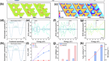 The free energies (ΔG) of ORR intermediates in the aforementioned reaction pathways were calculated using the standard hydrogen electrode model45. In this model, G(H+) = 1/2 G(H2) − kBT ln(10) × pH at non-zero pH (p = 1 bar, T = 298.15 K). The free energy for each intermediate was defined as G (adsorbate) = Et + ZPE – TS and was determined by the total energy (Et) obtained from DFT calculations for the geometric structures with the adsorbed species, as well as contributors from the zero-point energy (ZPE), temperature (T) and entropy (S). Since ZPE (zero-point energy) and TS contributed far less to ΔG than ΔE, thus ΔG could be inferred from ΔE46. Moreover, e− represented the electron transfer in the reaction, U represented the experimentally applied potential, and +eU was added to the equations to modify the ΔG of the steps. It was possible to express the ΔG of Eqs. (7–9) as follows: